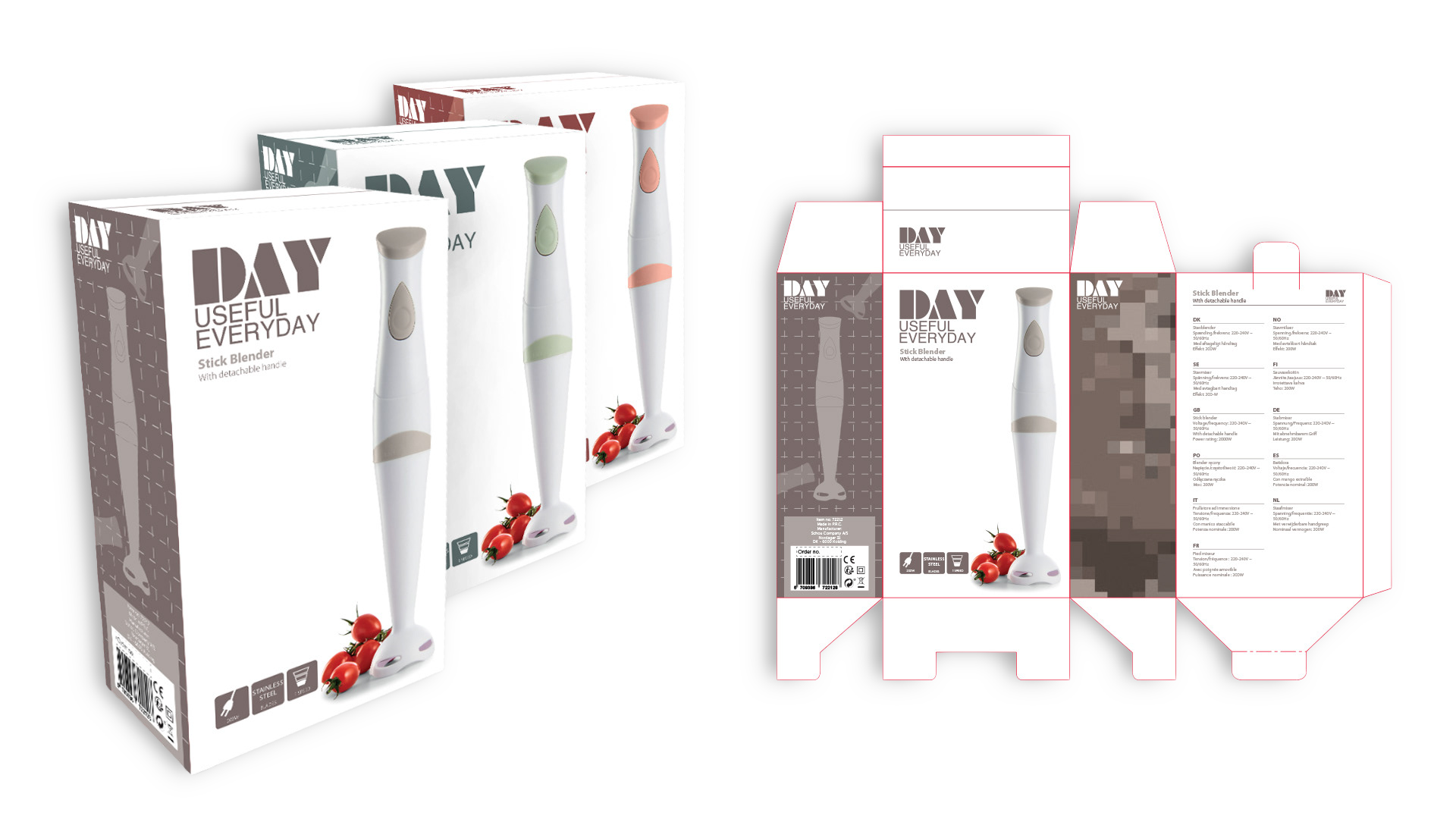 Jeg har arbejdet med emballagedesign for en række forskellige brands, hvor jeg har haft ansvar for hele den grafiske opsætning af emballagerne – fra layout til trykklare filer. Arbejdet har omfattet tilpasning og kvalitetssikring af dielines fra udenlandske leverandører, herunder korrektion af fejl og justeringer, så de lever op til tekniske krav og produktionsstandarder. Altid med udgangspunkt i brand guidelines er den visuelle identitet sikret og konsekvent implementeret på tværs af emballager.